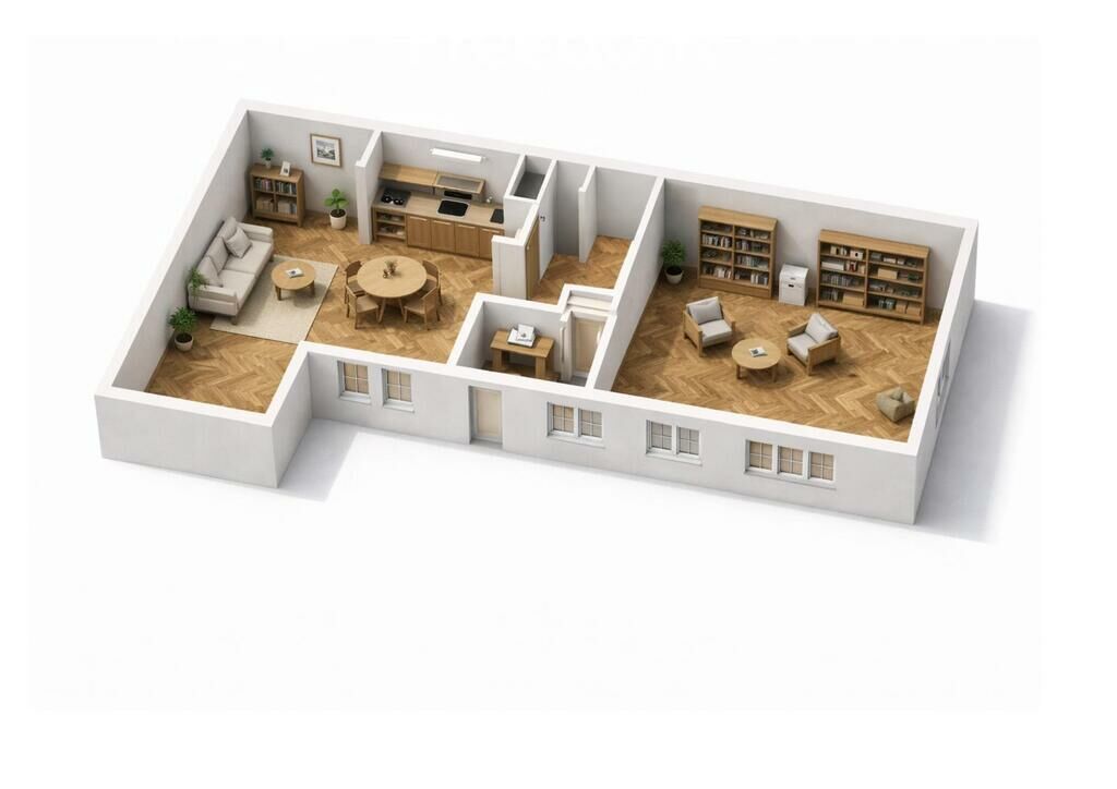 Układ pomieszczeń:Budynek został zaprojektowany z wyraźnym podziałem na strefę